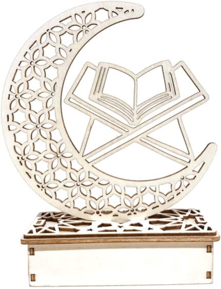 Tlymopukt Ramadan Lamp,Wooden Eid Mubarak DIY Ornamentseid, Mubarak Decorations for Home Eid Plates,Ramadan Eid Decorations Moon Ornament LED Night Light No Battery Moon Decor Home Party Supplies